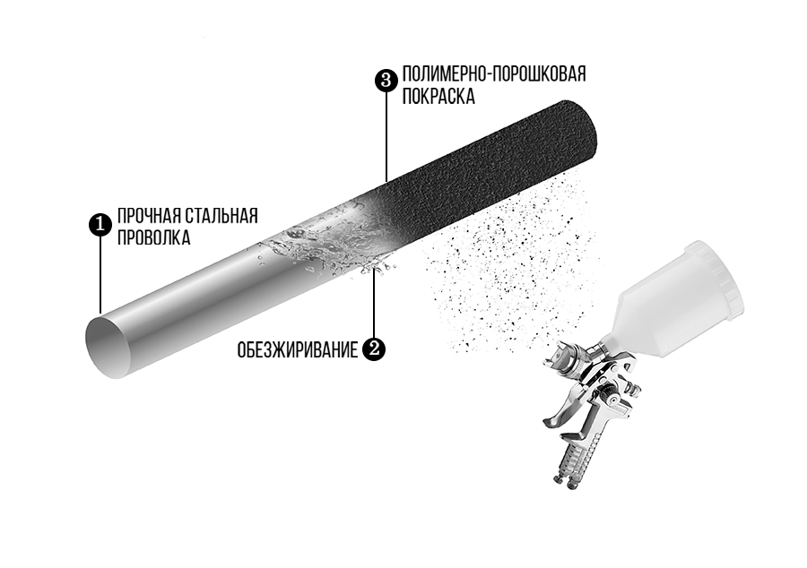 Высокое качество – качественная конструкционная сталь диаметром 2,5 мм обеспечивает жесткость, поэтому корзины и полки стойкие к деформации и повреждениям, а качество покрытия сетчатой продукции НАЙДИ позволяет использовать ее даже во влажных помещениях.